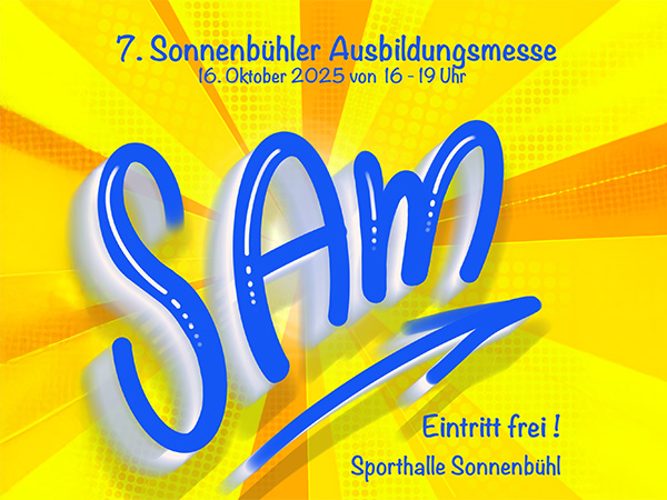 Wir freuen uns, dich bei der SAM 2025 kennenzulernen. Komm am Do. 16.10.2025 zwischen 16-19 Uhr vorbei und lerne unsere Ausbildungsberufe und unser Unternehmen kennen.
